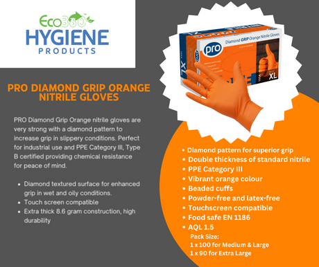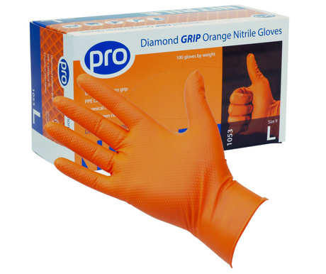 £9.50Unit price /UnavailablePro Orange Diamond Nitrile Gloves (90) XL