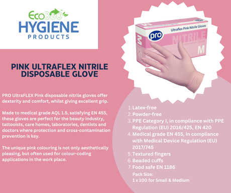 £5.29Unit price /UnavailablePro Ultraflex Pink Nitrile Gloves (100) medium