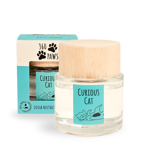 The 360 Paws Curious Cat Odour Neutralising Diffuser is thoughtfully crafted for cat owners who want a fresh, inviting home. Using AromaGuard™ technology, it effectively neutralises pet odours at the source while releasing a calming Fresh Lavender & Neroli aroma.