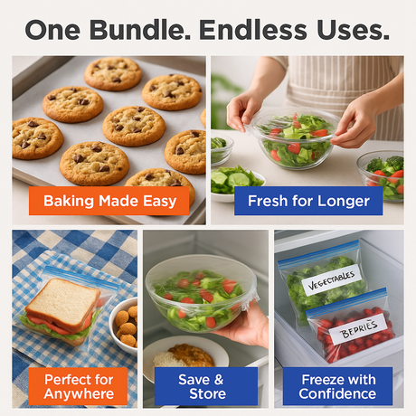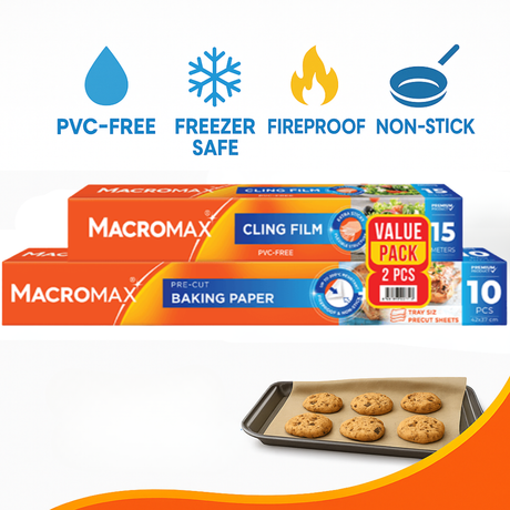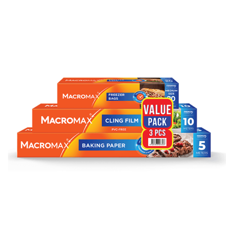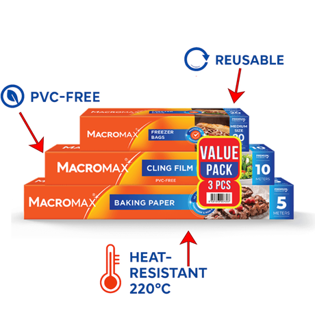 MACROMAX Food Storage & Cooking Value Pack | Cling Film, Baking Paper & Freezer Bags