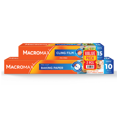 MACROMAX Cling Film 33m & Baking Paper 8m Value Pack | PVC-Free, Extra Sticky & Fireproof