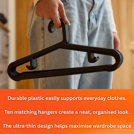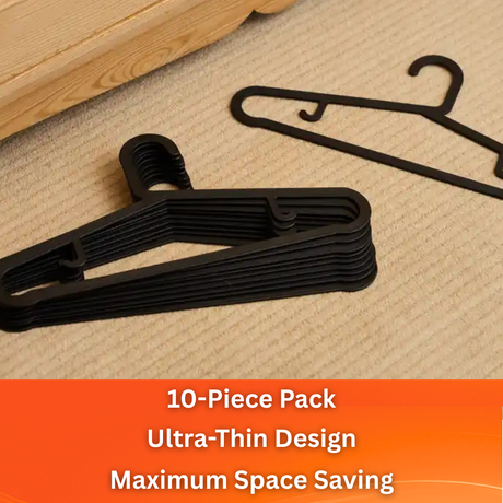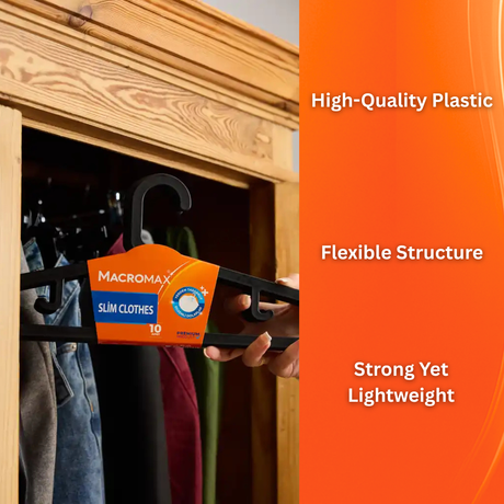 MACROMAX SLIM CLOTHS HANGER (10 Pack) | Ultra Thin, Space Saving Closet Organiser (Black)