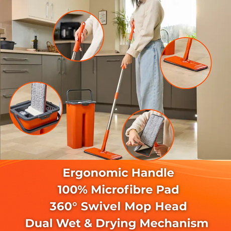MACROMAX FAMOUS Cleaning System Flat Mop | 100% Microfibre | Wet & Dry Use