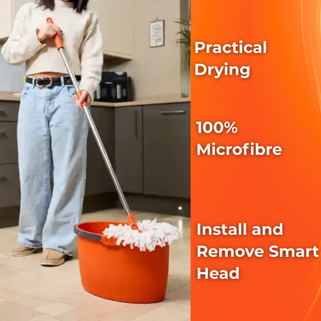MACROMAX FOCUS SPIN MOP AND BUCKET SET + MULTI MOP REFILL – 360° Microfibre Mop with Spin-Dry Bucket