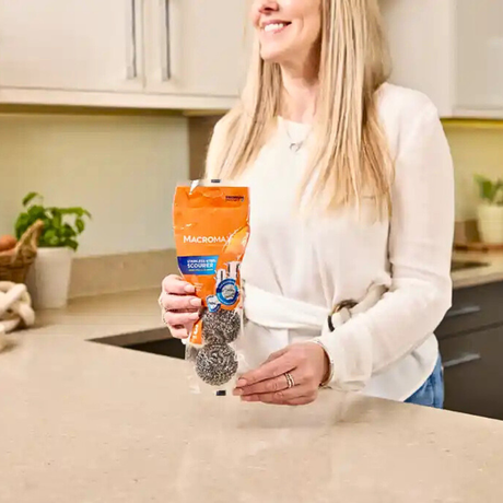 MACROMAX SCOURER WITH HANDLE – Non-Scratch Stainless Steel Scrubber for Stubborn Kitchen Dirt
