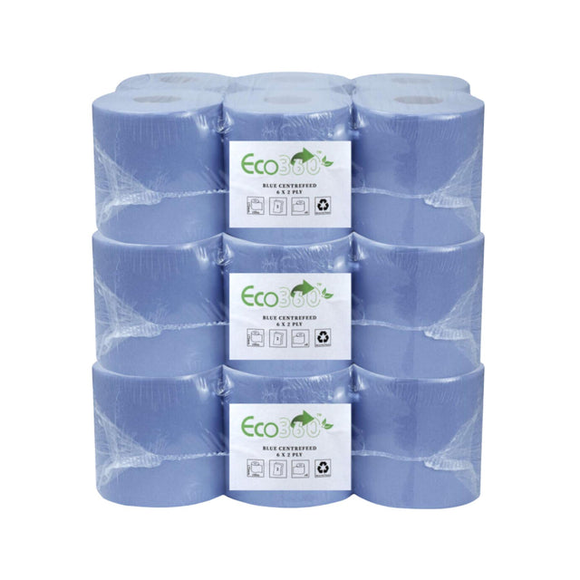 Blue Centrefeed Paper Hand Towel - 300 sheet Introducing our Blue Centrefeed, a versatile and convenient solution for your cleaning and wiping needs. It's perfect for busy environments, providing up to 300 sheets with one easy-to-load roll. Enjoy the benefits of a continuous supply of towels, perfect for reducing wastage and keeping workplaces hygienic with a roll length of 50M