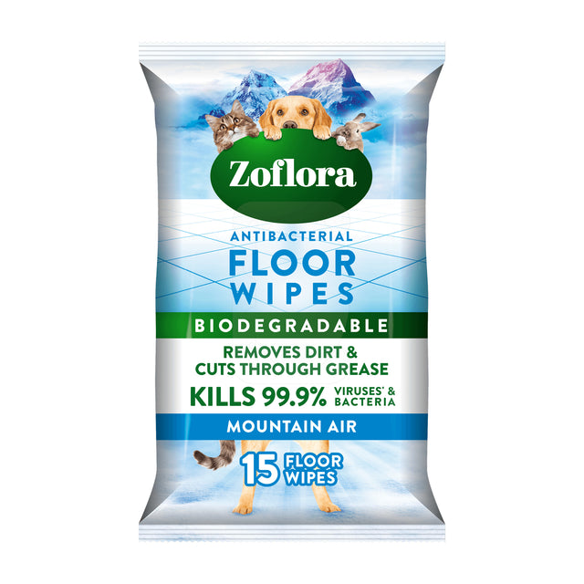 Mountain Air Fragrance 15 Wipes Per Pack, Biodegradable, Removes Dirt and Grime, Pet Friendly Suitable for use Vinyl, Ceramic Tiles, Linoleum, Sealed Wooden Floors, Sealed Laminate Floors Expertly designed for optimal effectiveness, Zoflora Mountain Air Antibacterial Floor Wipes (Pet Friendly) are gentle yet powerful. With biodegradable ingredients, these wipes remove dirt and grime effectively without leaving any harsh residue. They are suitable for use on a variety of flooring surfaces, including vinyl, ceramic tiles, linoleum, sealed wooden floors, and sealed laminate floors. Keep your floors clean and safe for your furry friends with Zoflora Mountain Air Antibacterial Floor Wipes.