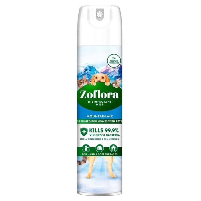 Zoflora Disinfectant Mist Spray is a multi-action solution that eliminates 99.9% of harmful bacteria and viruses, including SARS-CoV-2, with just one application. It leaves behind a pleasant fragrance that lingers for 24 hours, and dries within 45 seconds on hard surfaces. Ideal for use on both hard and soft surfaces in the home, this product is designed to keep all areas hygienically clean without the need to wipe. For a streak-free finish, simply buff surfaces with a microfibre cloth.